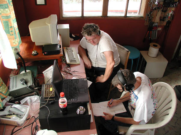 This operation took place from Sunday, November 18th through November 27th, 2001 from the HC8N station located on San Cristobal Island in the Galapagos. about 600 miles off the coast of Ecuador. A lower level of operation took place (by N0JK) during the daylight hours of the CQWW CW DX Contest. Jon N0JK was our 160m op so had nighttime duties on Top Band.